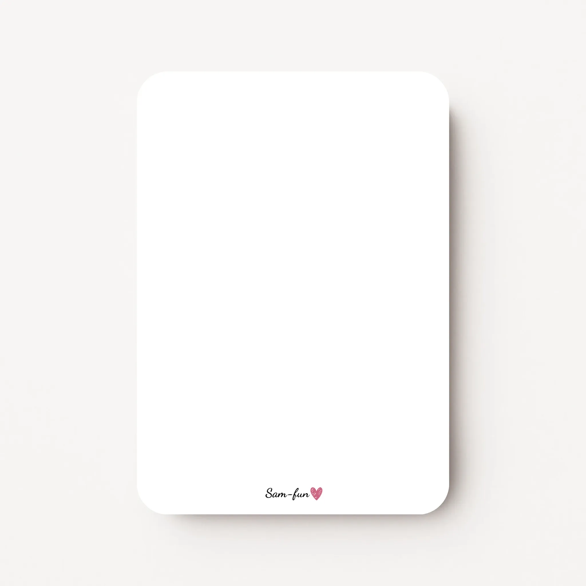 De eenvoudige vormgeving maakt deze kaart geschikt voor gastouders, oppas, collega’s of iedereen met wie je samen tijd hebt doorgebracht.