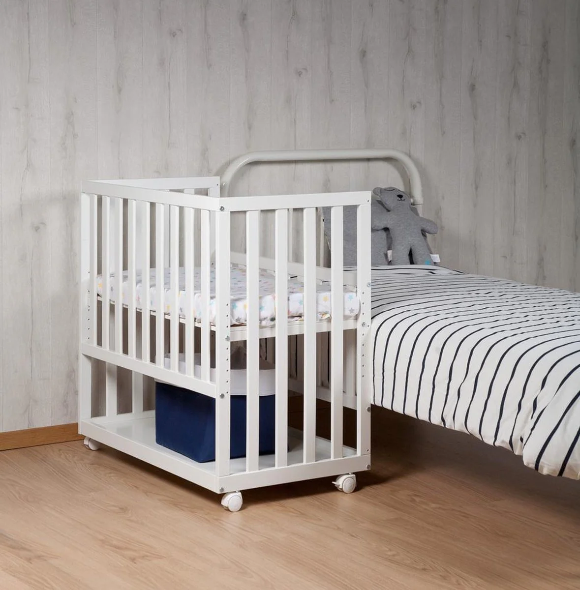 Bedkant babywiegje (50x90cm) om rechtstreeks tegen het bed van de moeder te plaatsen.