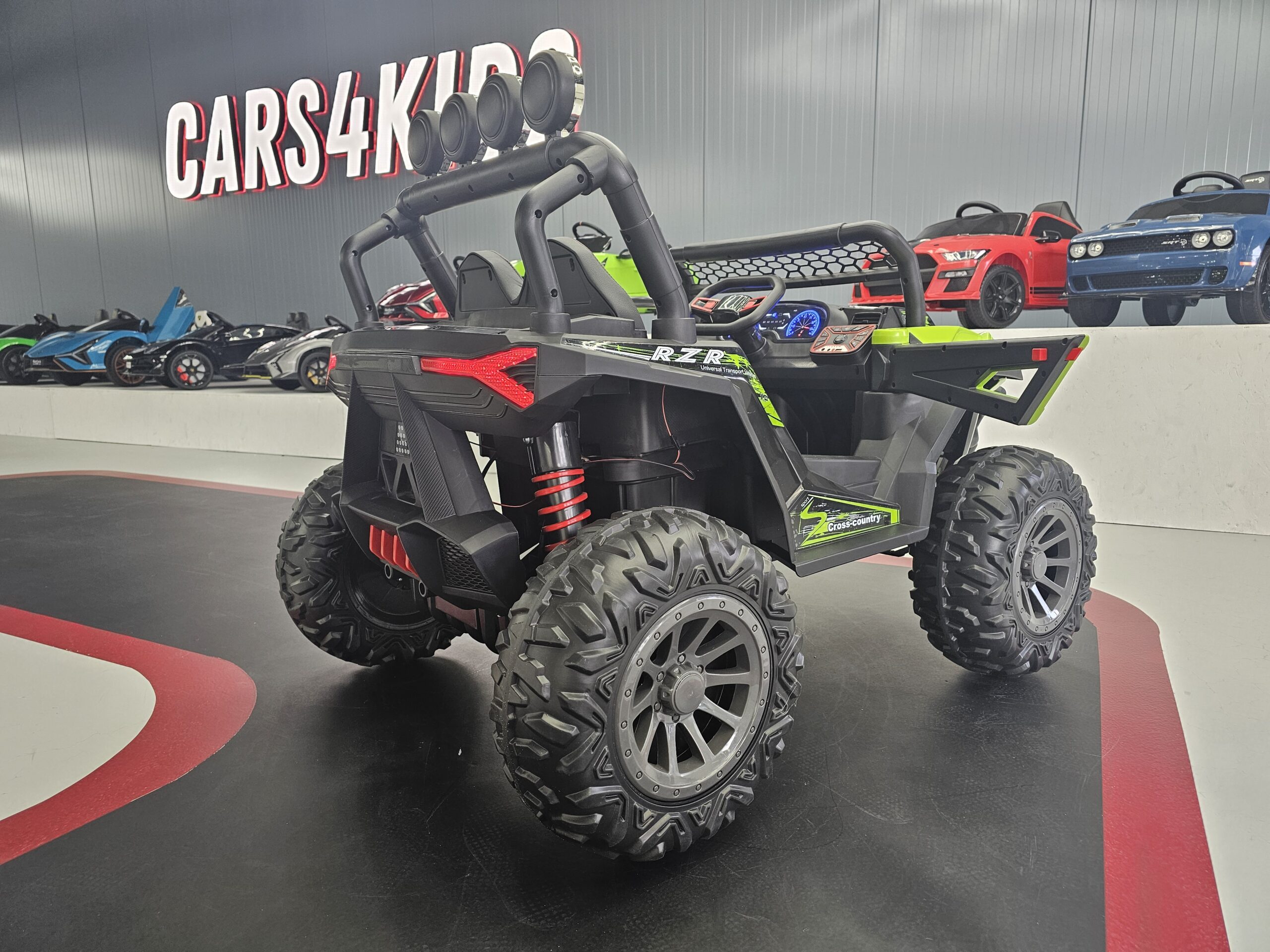 Deze grote elektrische kinder Buggy groen kan goed over gras en verharde onder grond rijden. Het is een echte terrein wagen met veel opties. De kinder Buggy is 1,5 persoons daarom passen hier 2 kinderen tot een leeftijd tot ongeveer 4 jaar en 1 kind tot ongeveer 6 jaar in!