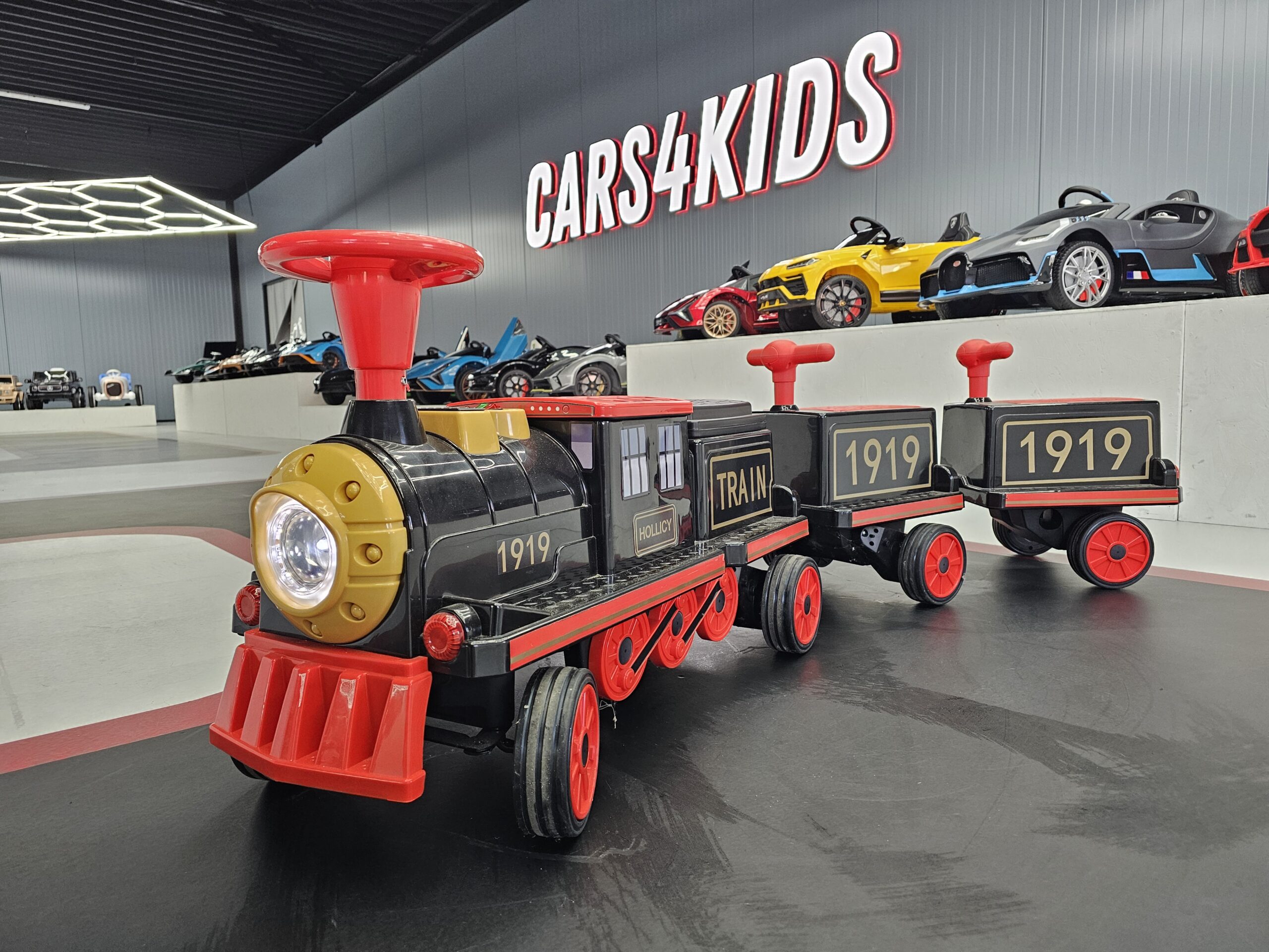 Cars4kids heeft nu een elektrische speelgoed trein waar kinderen mee kunnen rijden deze trein kan 100kg aan gewicht dragen.