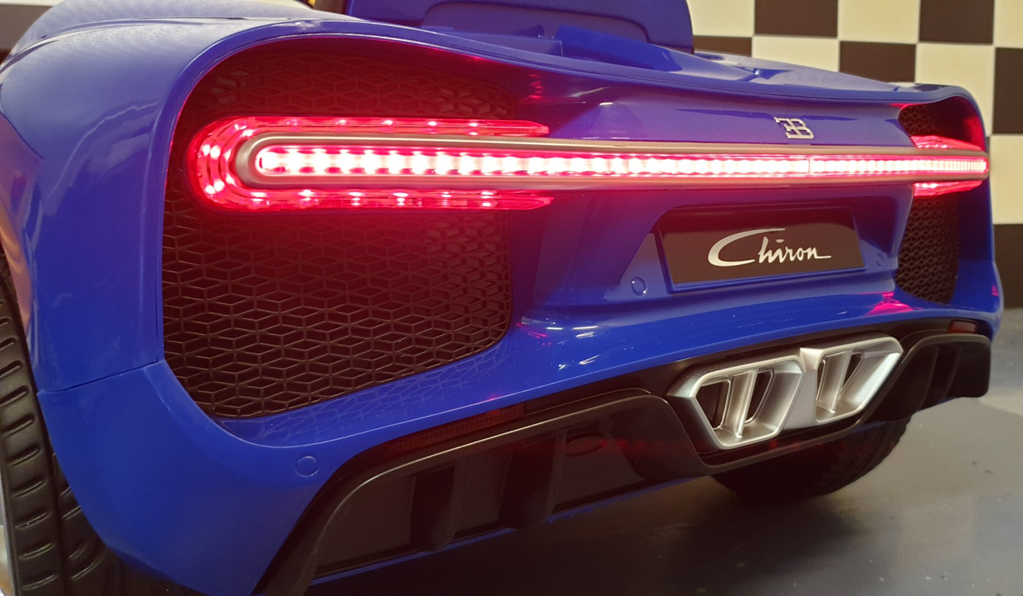 De Bugatti elektrische speelgoedauto is voorzien van voor en achter verlichting, een USB, MP3 en SD card reader. Tijdens het starten van de Bugatti hoor je het gegrom van de motor en de voor lampen knipperen op het motor geluid. De voor en achter led verlichting van de Bugatti speelgoedauto is bijna niet te onder scheiden met de echte Bugatti Chiron.