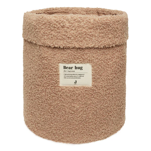 Handig mandje voor op de baby kamer. Je kunt er allerlei spullen in bewaren zoals, speelgoed of luiers. Daarnaast staat dit ook nog eens leuk in de babykamer. Ook handig om te gebruiken in de woonkamer als opbergmand voor het speelgoed van je kleintje. De aaibare opbergmand is gemaakt van het zachte Bouclé. Aan de voorkant het leuke ‘bear hug’ logo.