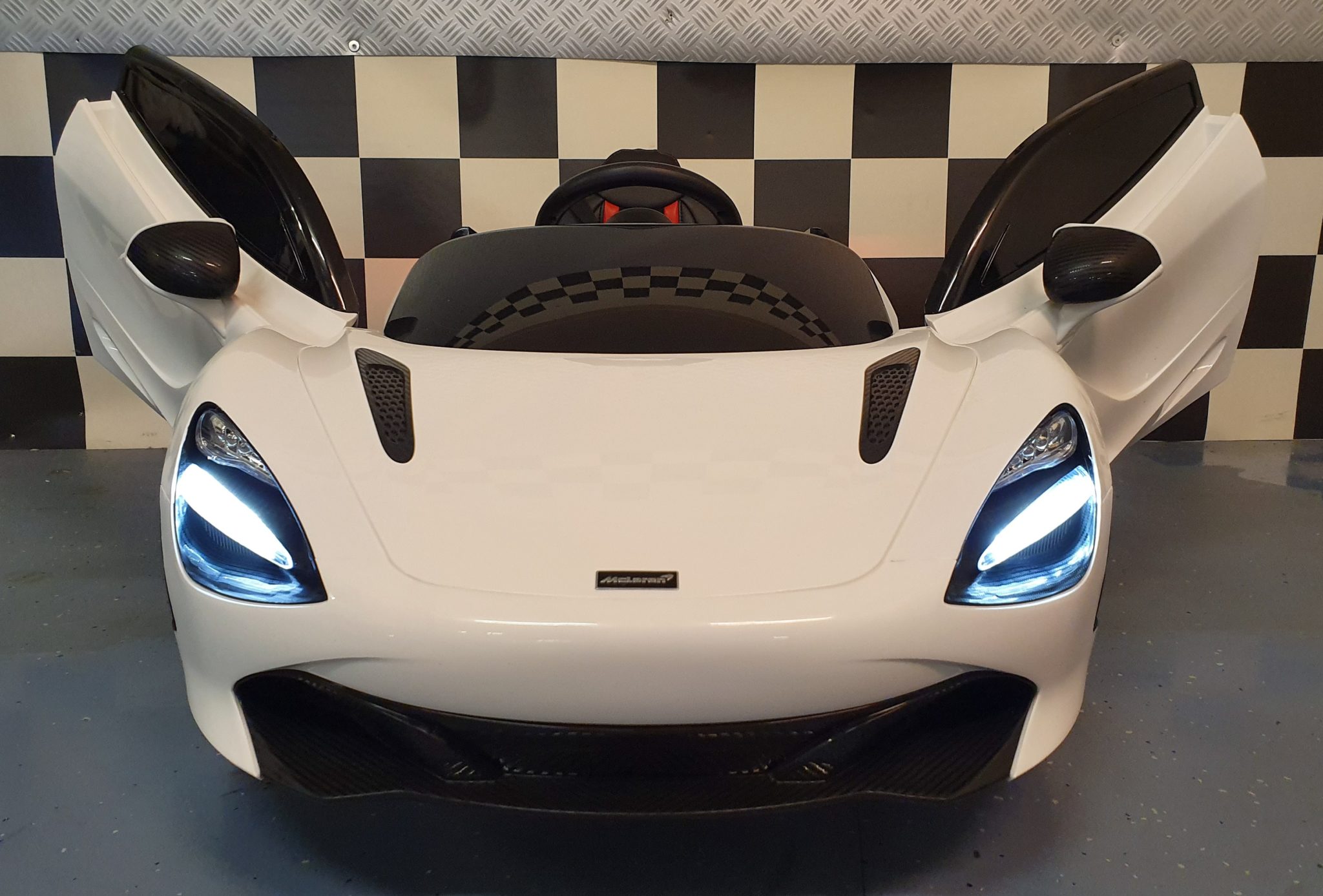De Mclaren elektrische kinderauto is voorzien van echt te openen deuren en beschikt over voor en achter verlichting. Deze beschikt over snelheden van ongeveer 2,5 km tot ca. 6 km, instelbaar door middel van de 2.4G afstandsbediening.