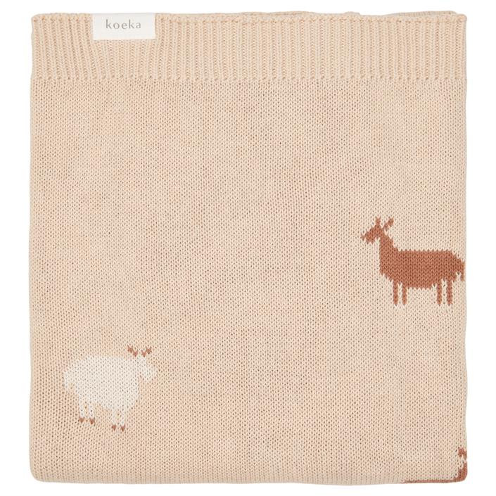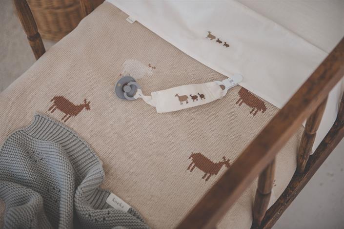 Het thema Goat Valley is verwerkt als vertederend ingebreid patroon op deze fijne deken. De familie geit klimt behendig over de deken terwijl je kleintje veilig wegdroomt. Deze gebreide Koeka deken is een echt collectors item: zowel stylish als duurzaam en gebreid met garen van 100% katoen om jarenlang plezier van te hebben. De deken is verkrijgbaar in een neutrale trendkleuren zodat deze ook in jouw babykamer past. En is je kleintje te groot voor het ledikant? Dan kan je deze deken gebruiken als sprei over het voeteneinde van het eenpersoonsbed of voor over de leuning van de bank.
