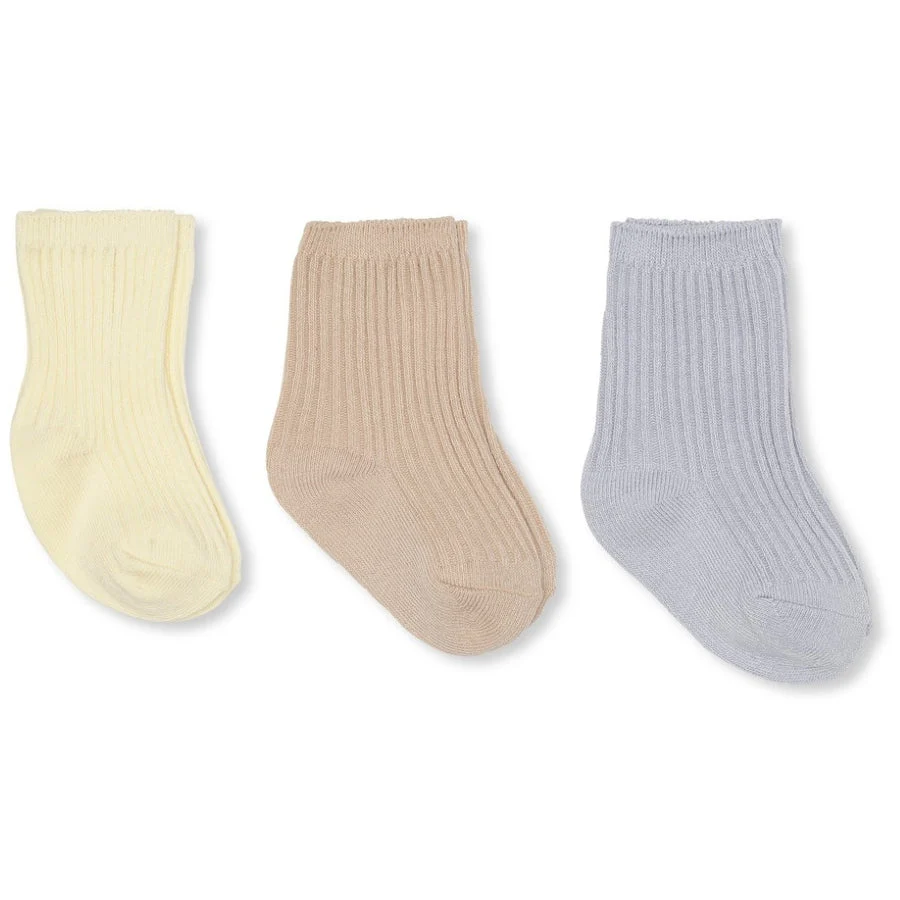 Maak de outfit van je kleintje compleet met deze rib sokken set van Konges Slojd. Het setje heeft een rib design en bevat drie verschillende kleuren.
