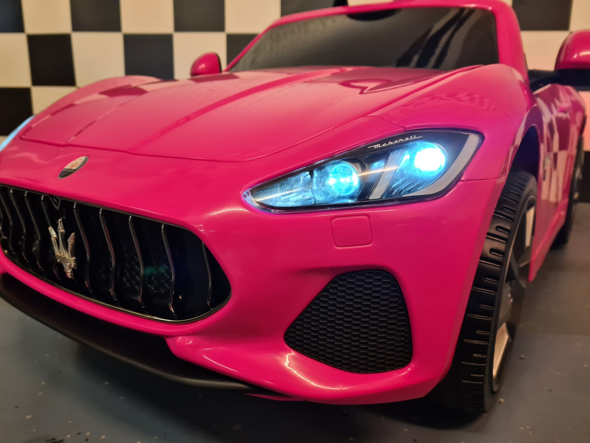 Deze onder licentie gemaakte Maserati kinderauto in de kleur roze. Deze Prachtige Maserati Gran Turismo met een TOP afwerking die je van een licentie auto mag verwachten. Door het unieke Italiaans design ziet deze kinderauto er geweldig uit. Uiteraard heeft deze Maserati alle opties die je in moderne kinderauto’s kan vinden o.a. rubberen/eva banden, een lederen zitting en echt te openen deuren.