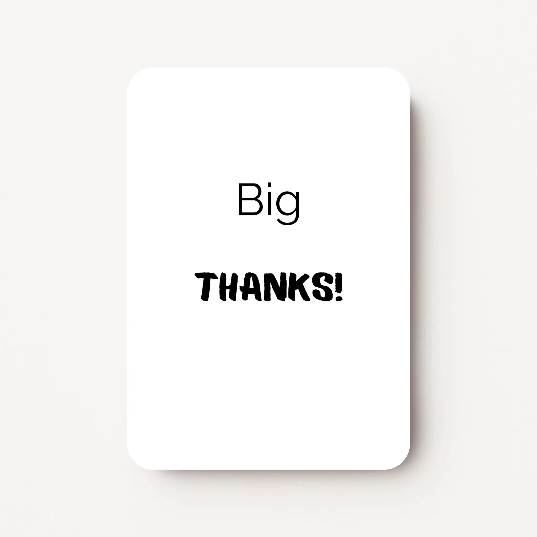 De moderne, minimalistische uitstraling en de heldere typografie maken dit kaartje ideaal voor zakelijke en semi-zakelijke situaties waarin Engels de voertaal is. De tekst “Big THANKS” is grammaticaal correct en voelt zowel persoonlijk als professioneel.
