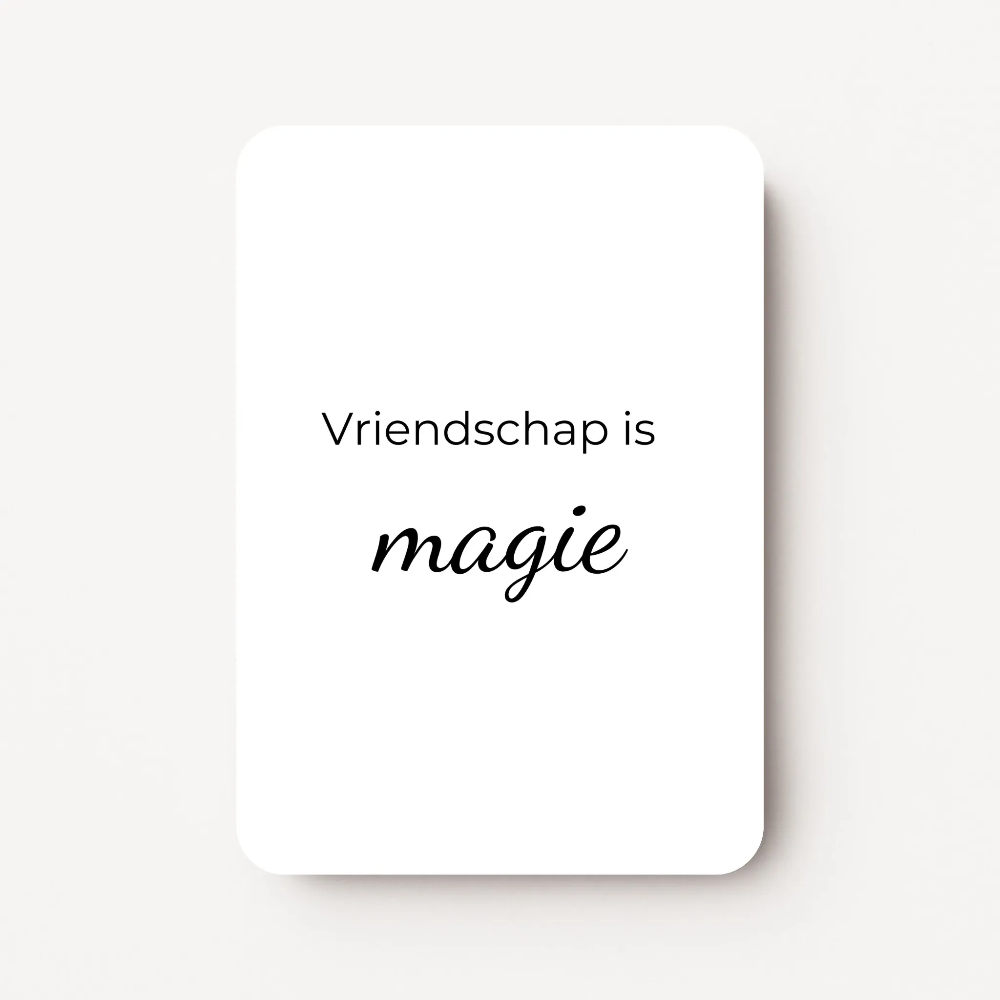 Dit minikaartje met de tekst “Vriendschap is magie” van Sam-fun vangt het bijzondere van een echte vriendschap in één simpele zin. Voor die momenten waarop je wilt laten zien dat jullie band iets speciaals heeft, iets wat niet in woorden te vatten is maar wel gevoeld wordt.