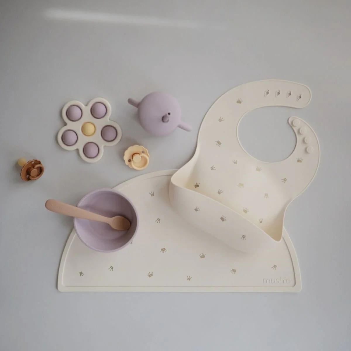 De Mushie Mealtime Cadeauset combineert functionaliteit, stijl en veiligheid – een must-have voor gezinnen met een pasgeborene.