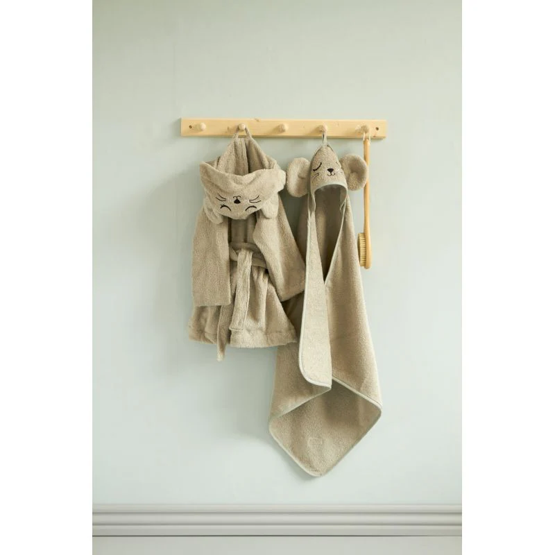 Met deze badjas van Roommate blijft je kleintje heerlijk warm als hij/zij uit bad komt. Aan de badjas zit een capuchon met lieve oortjes, zodat het hoofdje van je kleintje ook lekker warm blijft na het badderen.