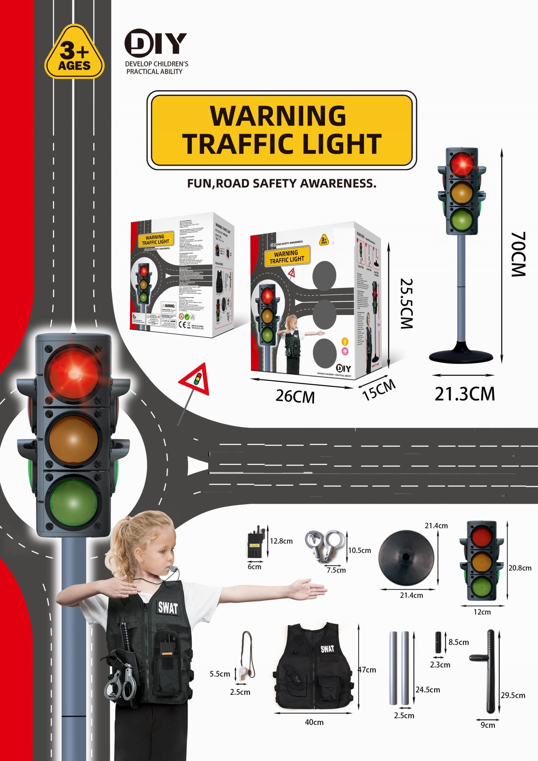 Voor de echte politie agent die het verkeer in goed banen moet lijden hebben wij deze speelgoed set politie met stoplicht. Deze set is uitgevoerd met de de volgende attributen.