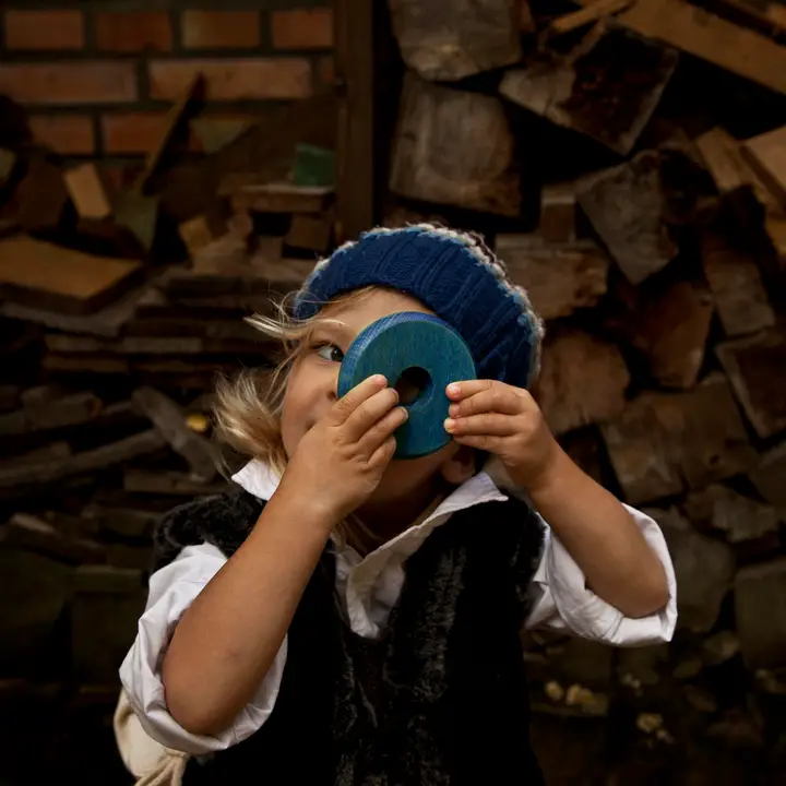De set bestaat uit een basisplank en verschillende houten ringen in levendige regenboogkleuren. Kinderen worden aangemoedigd om de ringen op de basisplank te stapelen, waarbij ze hun coördinatie en ruimtelijk inzicht gebruiken om de grootte en kleur van de ringen te ordenen.